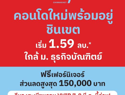 เวย์ ชินเขต คอนโดใหม่แต่งครบ พร้อมอยู่ เริ่มเพียง 1.59 ล้าน 2 นาที ถึง ม.ธุรกิจบัณฑิตย์ โทร 061-6161426
